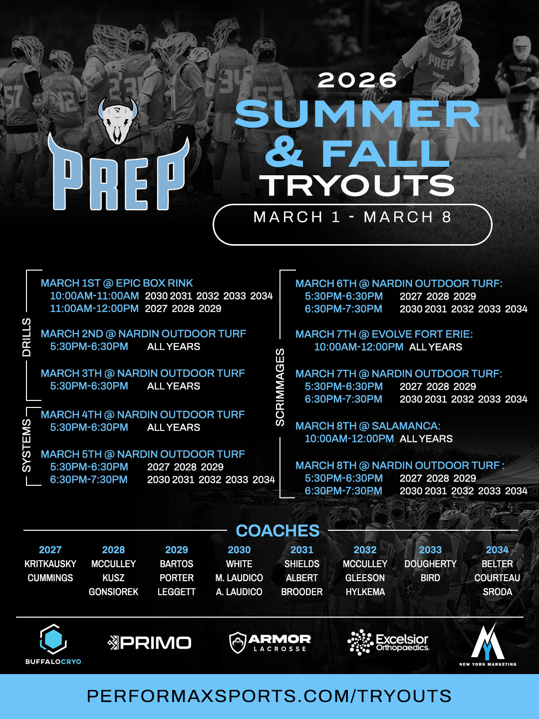 Includes Box Jersey & Extra Practices, Scrimmages - March 2026 Try Outs – March 1st to March 8th $100