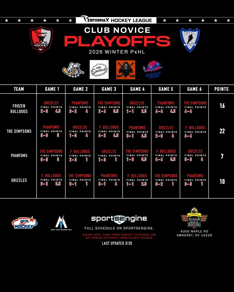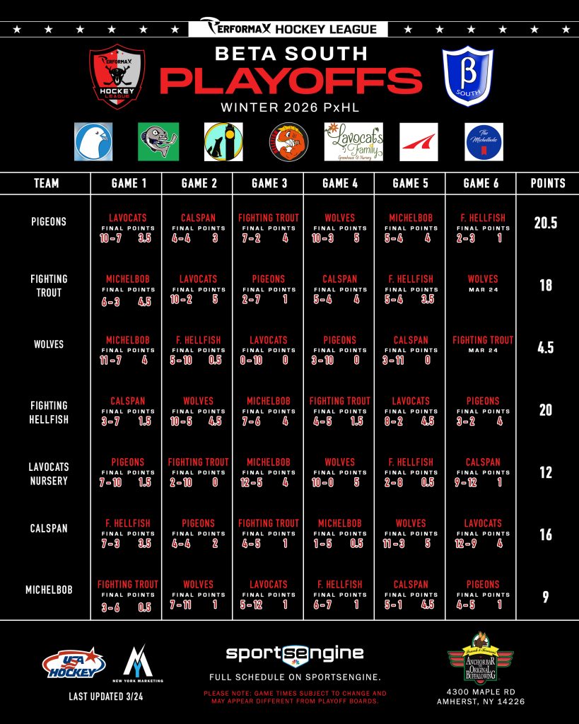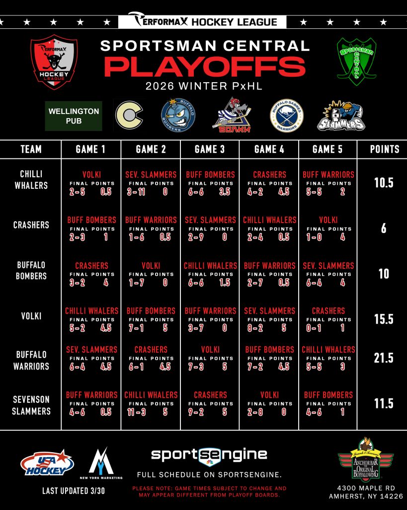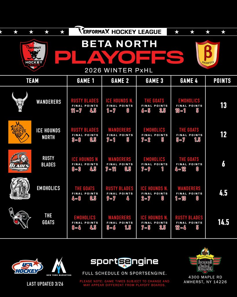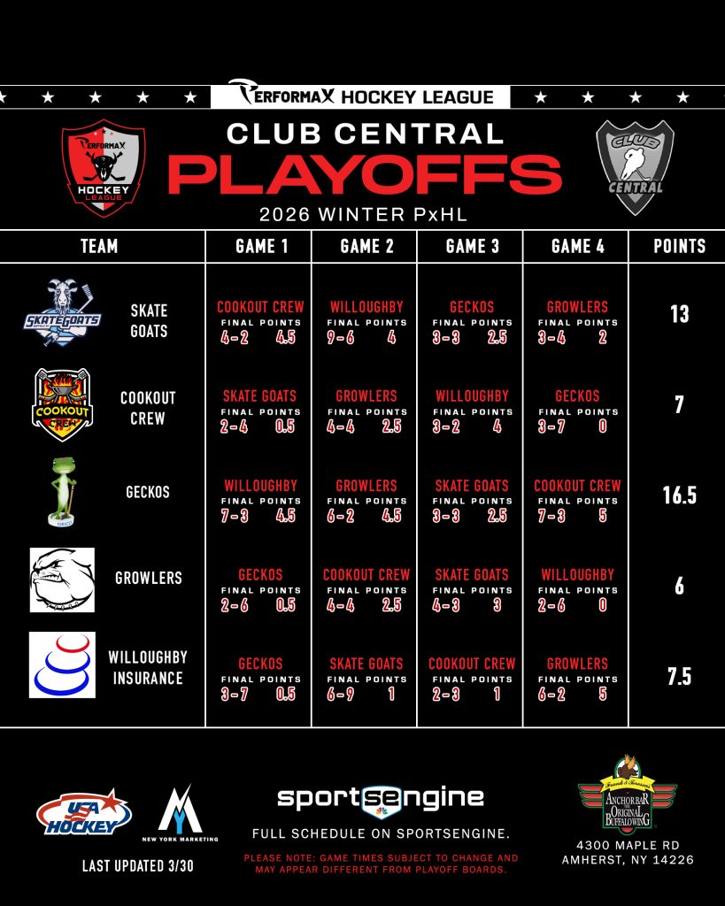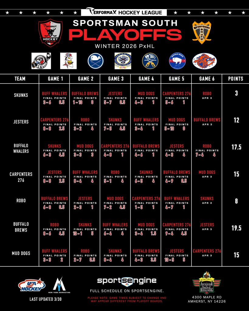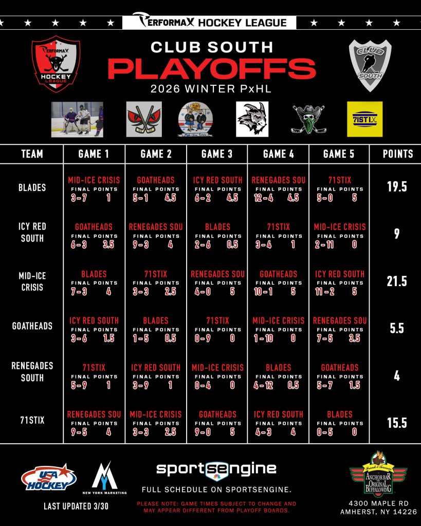 Please Note: Game times subject to change and may appear different from playoff boards. For the most up-to-date schedule, visit performax-sports.sportngin.com