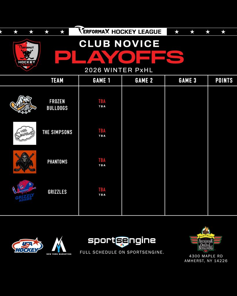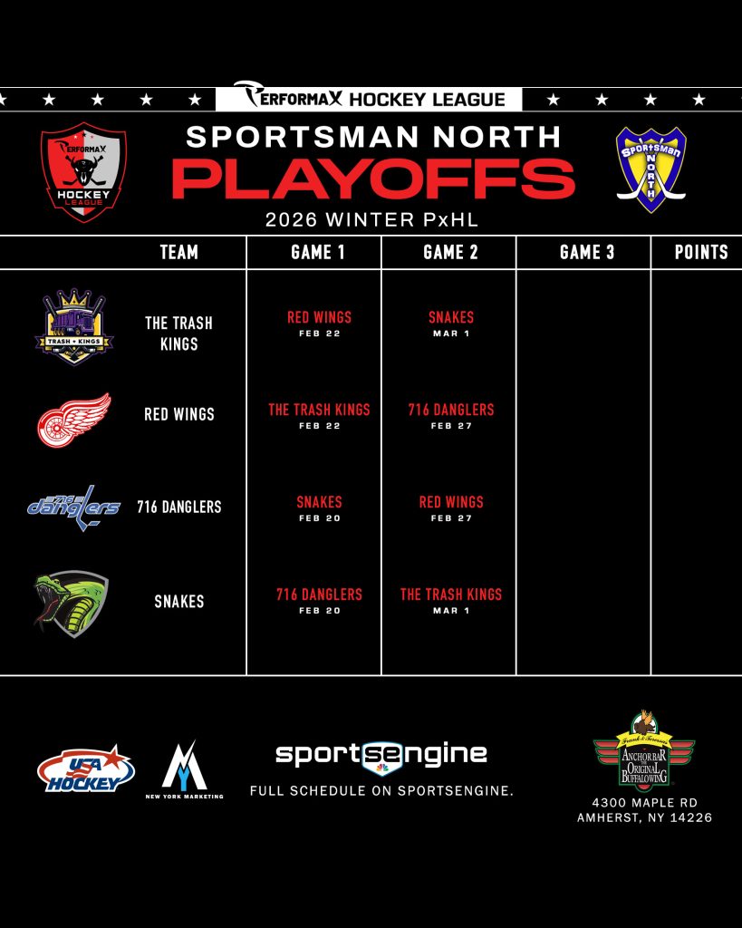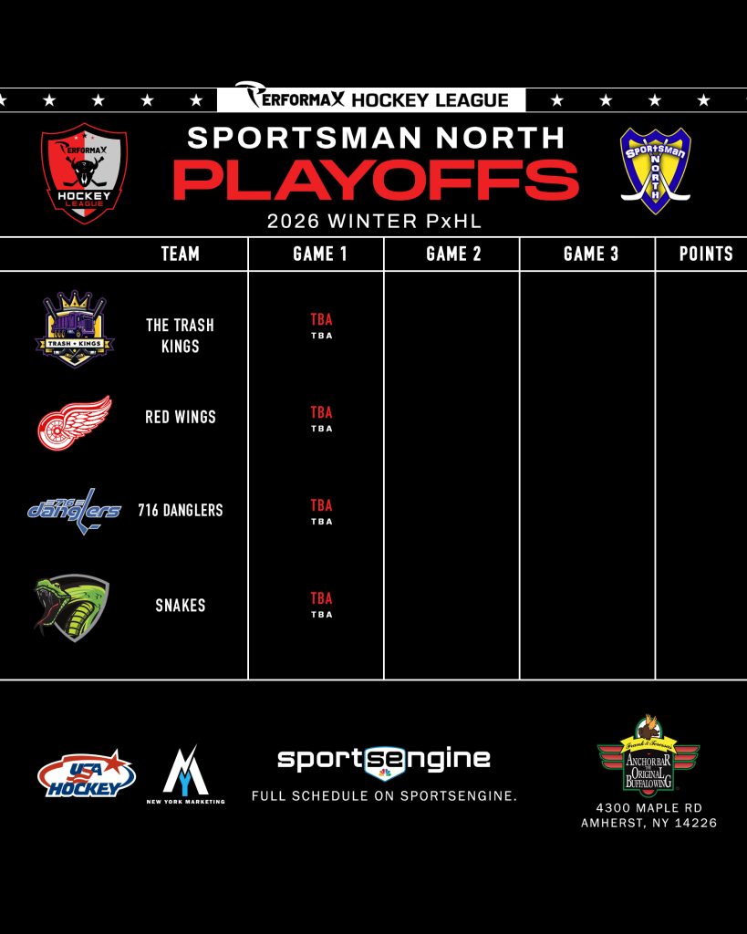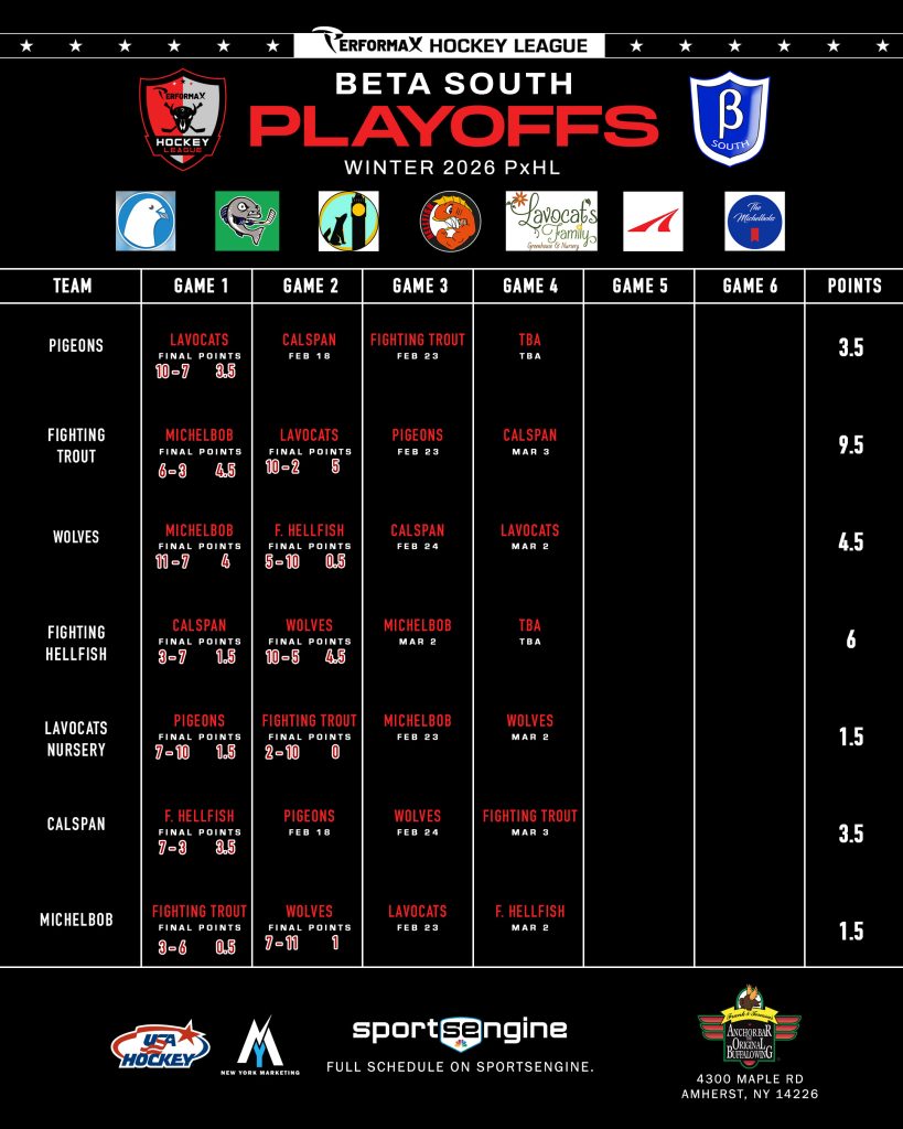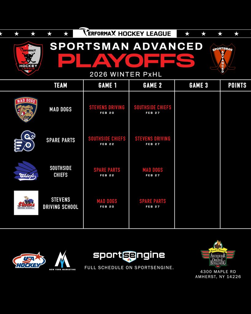 2026 Winter PxHL Playoffs (Click any image to enlarge. Tiebreakers 1 – Points2 – Wins (overall record)3 – Head to head (combined for teams tied)4 – Divisional record5 – Overall goal differential VIEW PAST YEARS