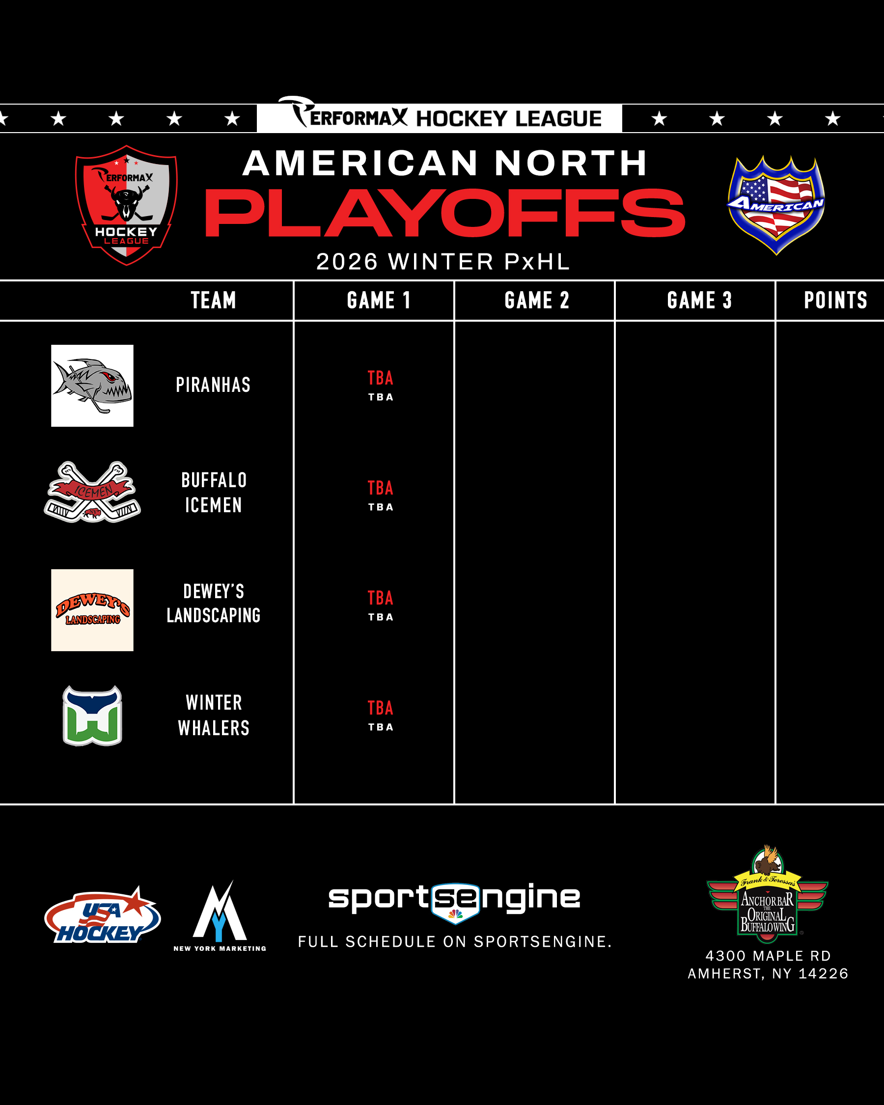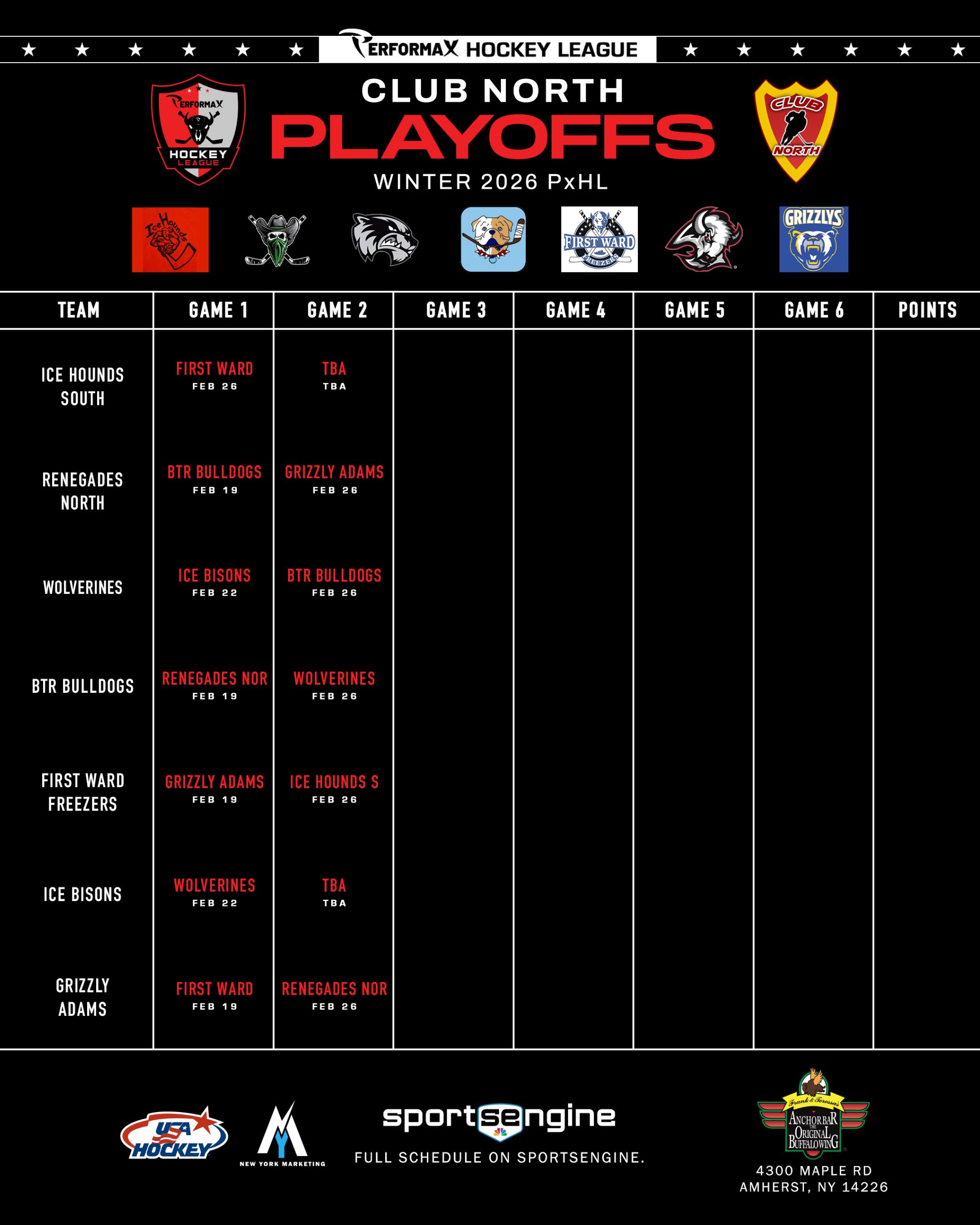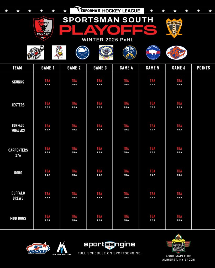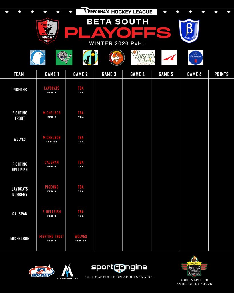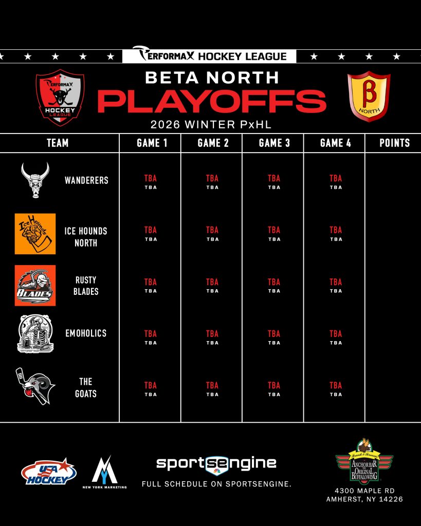 2026 Winter PxHL Playoffs (Click any image to enlarge. Tiebreakers 1 – Points2 – Wins (overall record)3 – Head to head (combined for teams tied)4 – Divisional record5 – Overall goal differential VIEW PAST YEARS