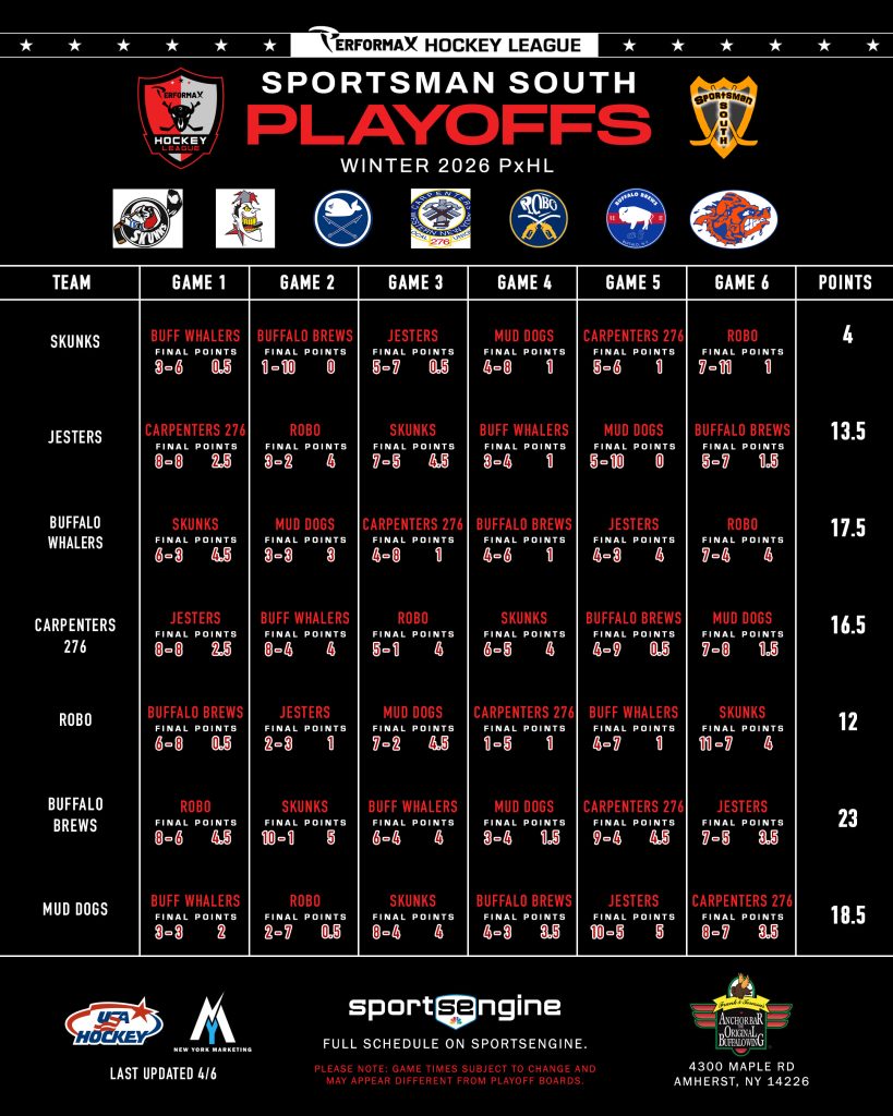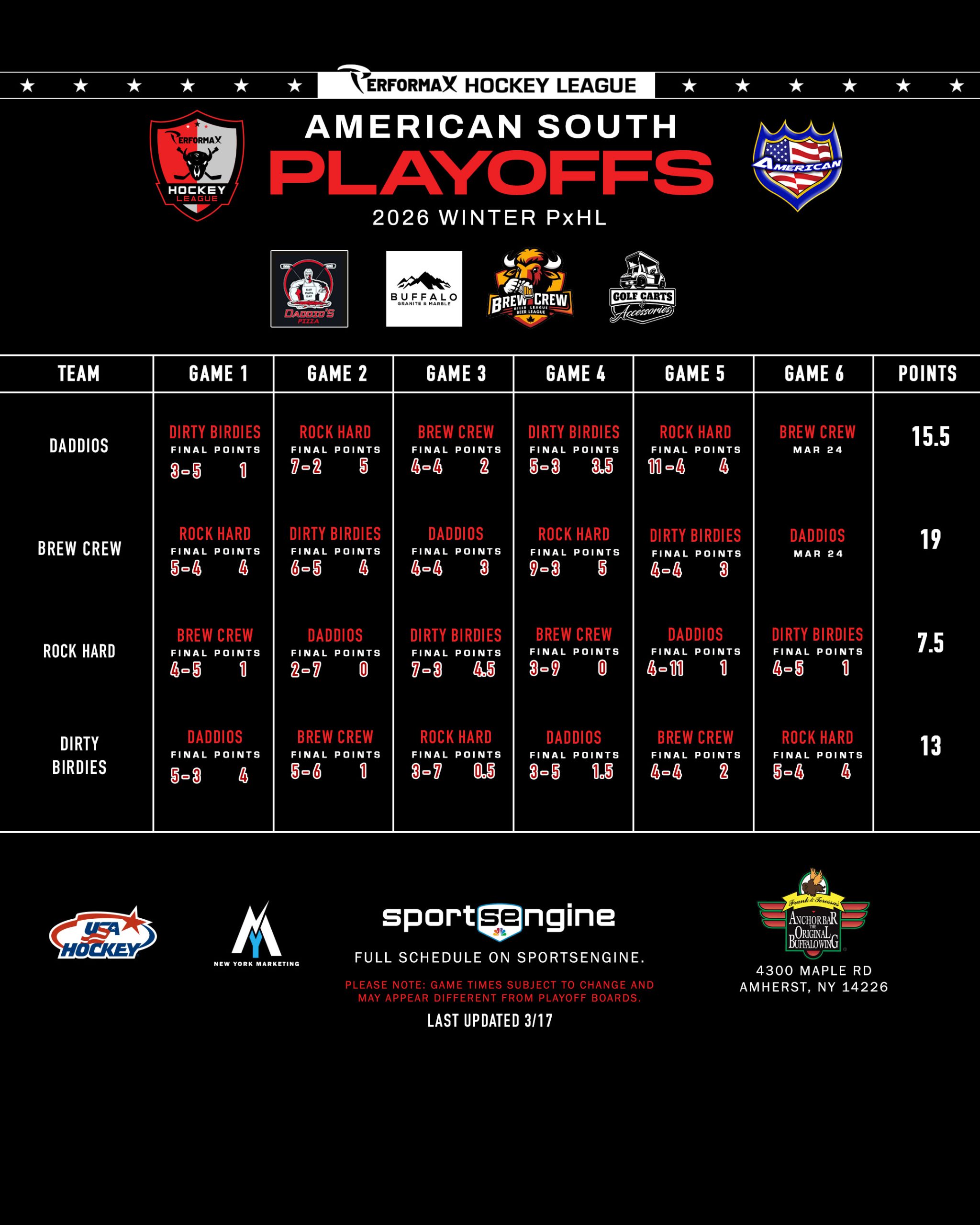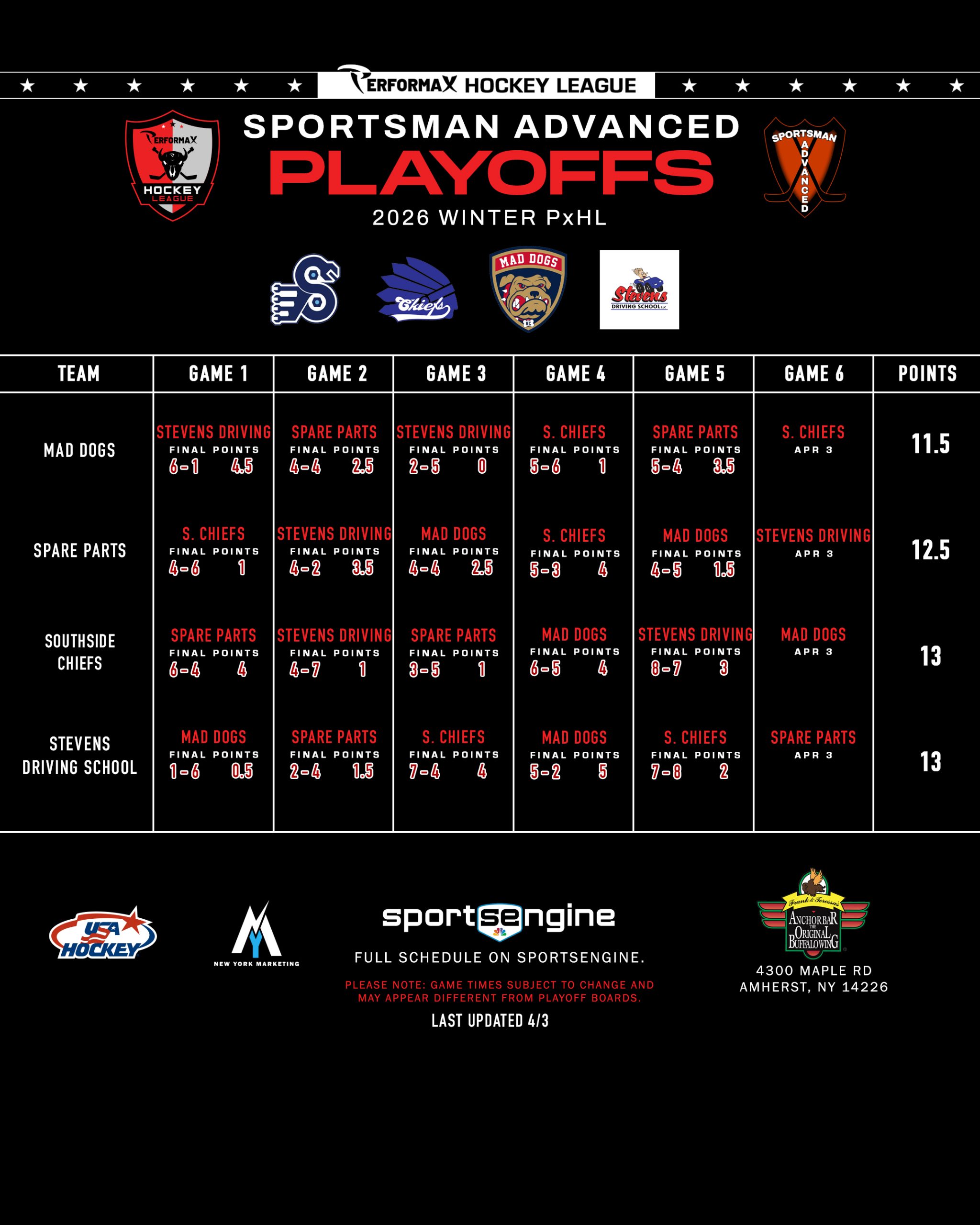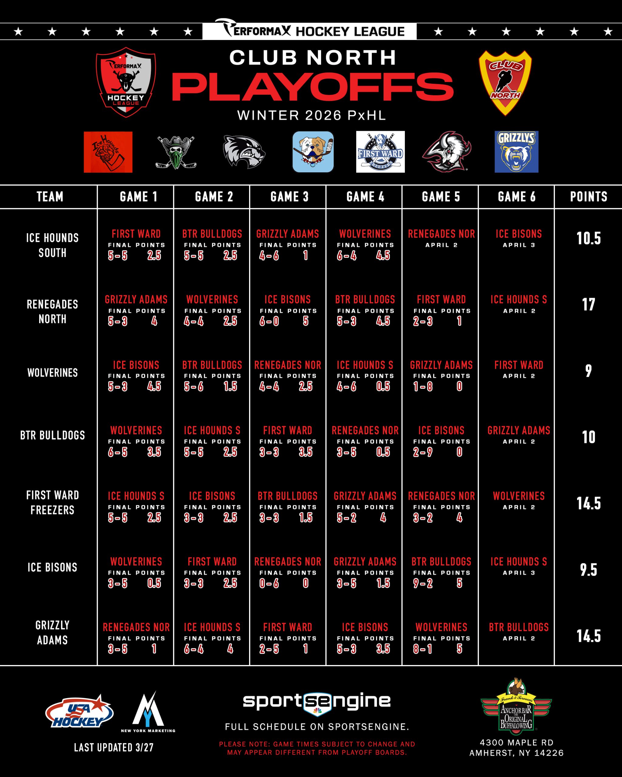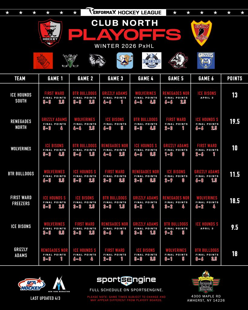 Please Note: Game times subject to change and may appear different from playoff boards. For the most up-to-date schedule, visit performax-sports.sportngin.com