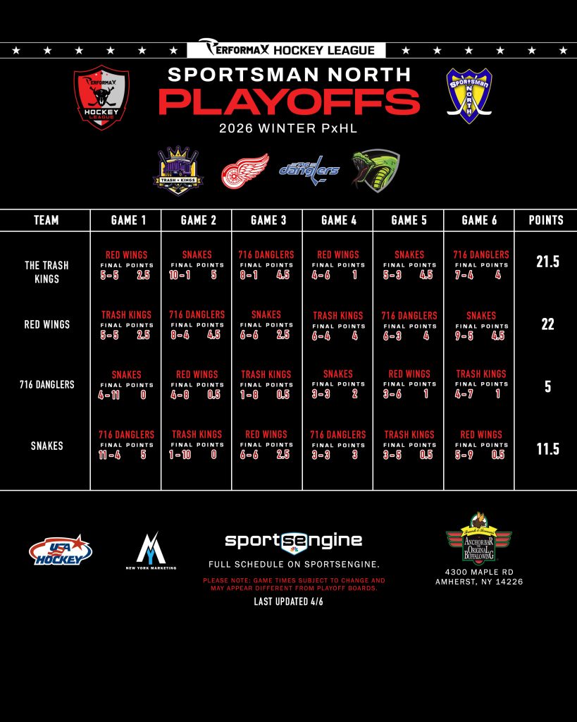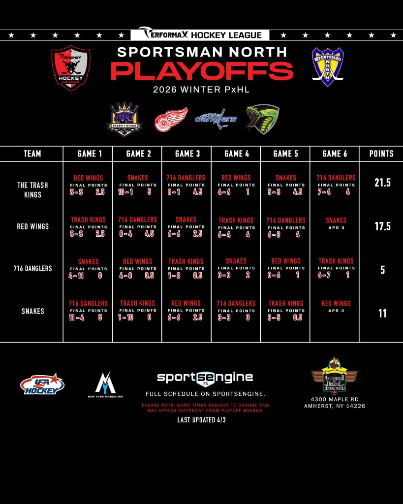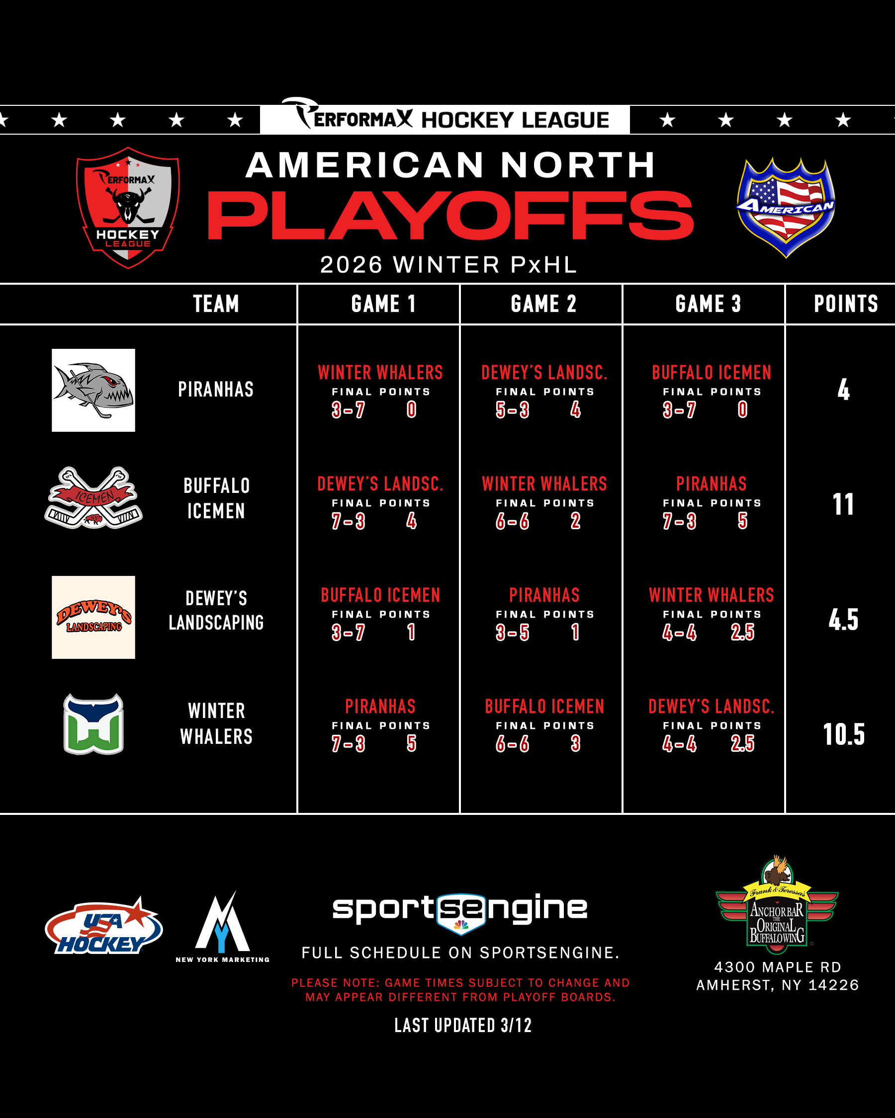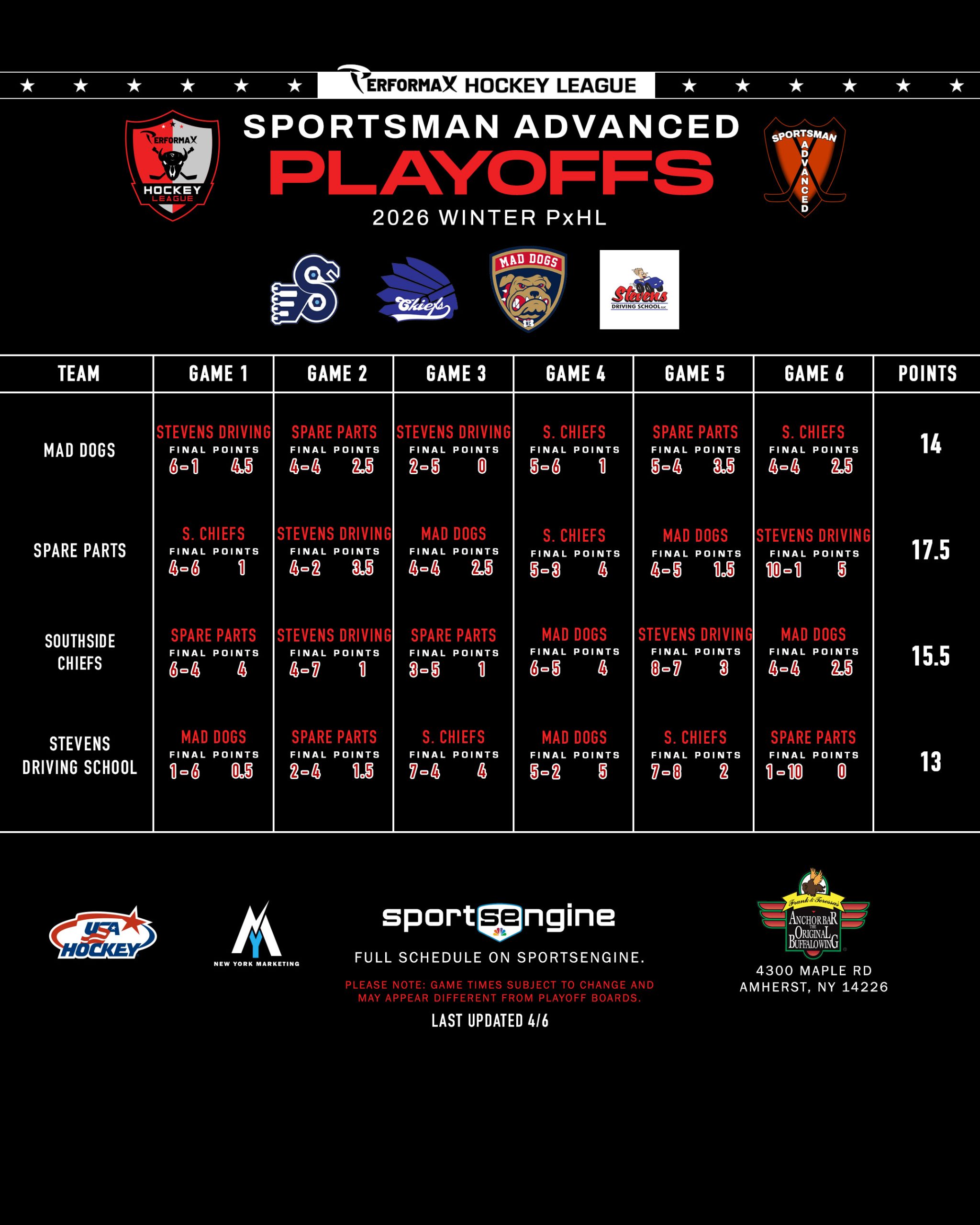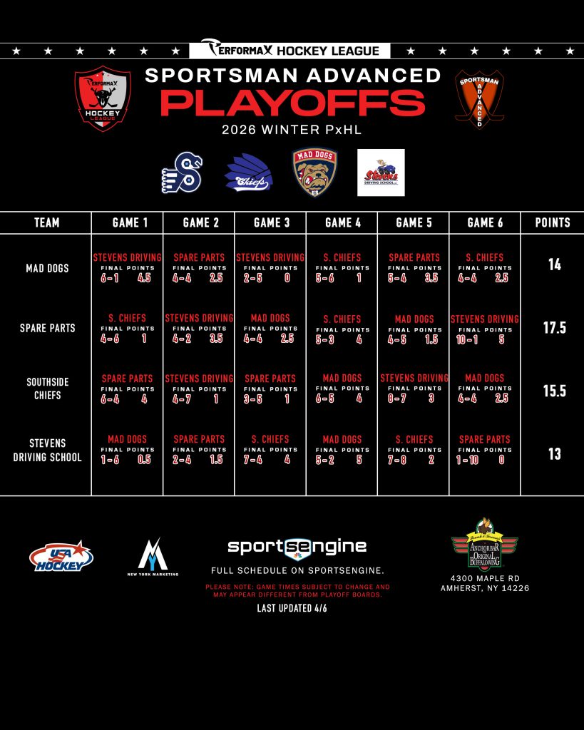 Please Note: Game times subject to change and may appear different from playoff boards. For the most up-to-date schedule, visit performax-sports.sportngin.com